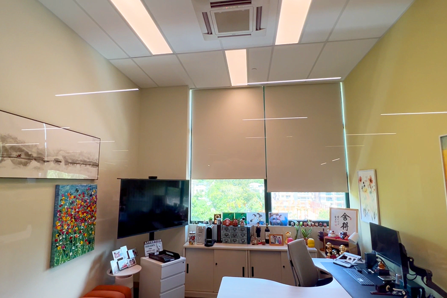 In the meeting room, Spotlights add depth while Wellsky brings natural light indoors, energizing the space and sparking creativity. The manager’s office is equipped with a Panel, providing soft, uniform light for focused work and brief moments of rest.